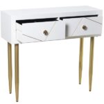 Mesa Entrada Madera 2 Cajones Blanco, Patas Metal Oro 90x30x80cm Alt. Patas:55,5cm