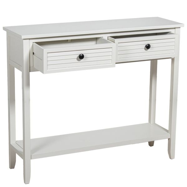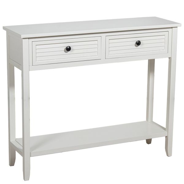 Mesa Entrada Madera 2 Cajones Blanco/ratán 80x30x78cm, Abeto+dm+ratán