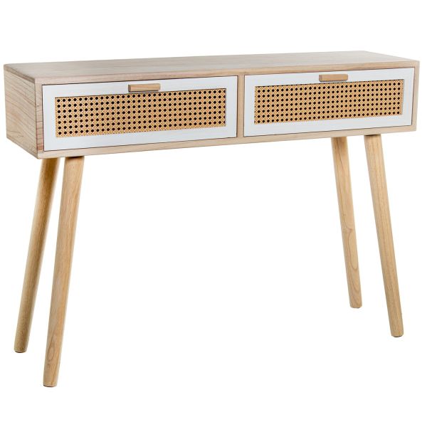 Mesa Entrada Madera 2 Cajones Blanco/ratán 80x30x78cm, Abeto+dm+ratán